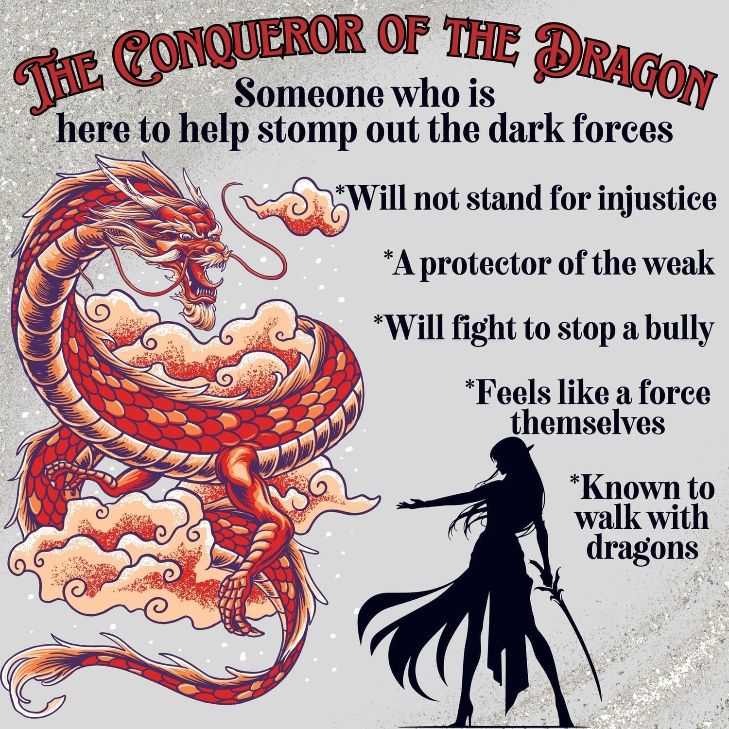 I am not someone who is The Conqueror of The Dragon, but I am the mother of two daughters who have come here with this mission. They are both protectors of the weak and feel like strong forces of nature themselves. There is nothing better than to be surrounded with people who carry this strong energy. Not only will you feel safe in their presence, but you will always know they have your back in even the hardest of situations.
